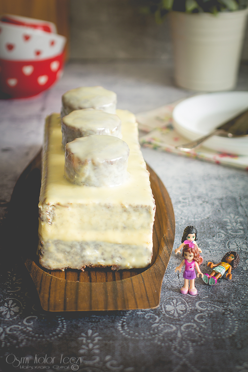 Czemu nie? Aby uzyskać kolor niebieski, czy czerwony wystarczy do polewy dodać niewielką ilość barwnika spożywczego. Można też użyć klasycznej masy cukrowej lub marcepanowej do pokrycia tortu – będzie gładki, jak prawdziwy klocek LEGO.